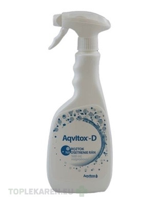 Roztok v spreji na ošetrenie kože, slizníc, kožných a slizničných defektov a rán v zdravotníckych zariadeniach a v rámci domácej ošetrovateľskej starostlivosti. AQVITOX-D obsahuje aktívny chlór - zmes kyseliny chlórnej a chlórnanu sodného (< 0,05%), chlórdioxid, chloridy. Bezfarebná tekutina so slabým zápachom chlóru.