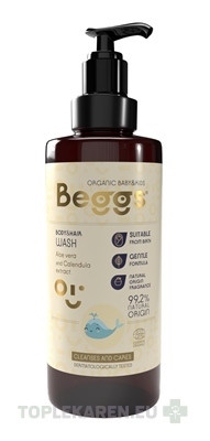 Beggs Detský sprchový gél na telo a vlasy je šetrný nielen k citlivej pokožke Vášho dieťatka, ale aj k jeho jemným vláskom. Obsahuje aloe vera šťavu, ktorá podporuje hydratáciu pokožky, vyživuje ju a chráni. Ďalej obsahuje extrakt z kvetov nechtíka lekárskeho, ktorý má zjemňujúce a zvláčňujúce účinky. Obe zložky pochádzajú z kontrolovaného ekologického poľnohospodárstva (BIO) a 99,2 % zložiek v balení je prírodného pôvodu. Gél krásne vonia a je vhodný aj pre tú najcitlivejšiu pokožku bábätiek už od narodenia.