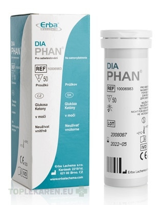 Diagnostické prúžky DIAPHAN NA SAMOVYŠETRENIE slúžia k semikvantitatívnemu stanoveniu obsahu glukózy a ketolátok v moči. Sú určené predovšetkým pre pacientov s diabetom, ktorí nie sú liečení inzulínom. Frekvencia merania je individuálna na základe konzultácie s lekárom. Všeobecne je možno odporučiť kontrolu 1-2x týždenne nalačno. Pri zácviku alebo v prípade dekompenzácie denne nalačno a po 1-2 h po jedle.