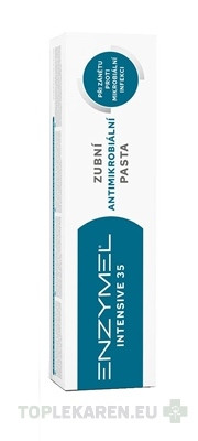Antimikrobiálna zubná pasta ENZYMEL Intensive 35. Na intenzívnu a šetrnú hygienu. Vďaka proteolytickým enzýmom potláča rast baktérií 4x účinnejšie ako samotný chlórhexidín.