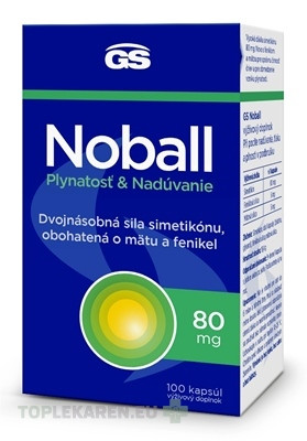 Aktívne látky/1kapsula: simetikón 80 mg, feniklová silica 5 mg, mätová silica 5 mg, obal kapsuly (želatína, glycerol)