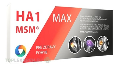 HA1 MSM® MAX je zdravotnícka pomôcka s označením CE podľa smernice Rady č. 93/42/EHS o zdravotníckych pomôckach obsahujúca 16 mg/ml chemicky neupravenej kyseliny hyalurónovej, pripravenej fermentáciou a MSM. HA1 MSM® MAX je priehľadný, sterilný, nepyrogénny a viskózoelastický roztok v 3 ml striekačke. Kyselina hyalurónová je prírodný polysacharid prítomný v mnohých ľudských tkanivách, zvlášť v synoviálnej tekutine, pôsobiaci v kĺbe ako lubrikant chrupky a väzu a zároveň ako tlmič nárazov.