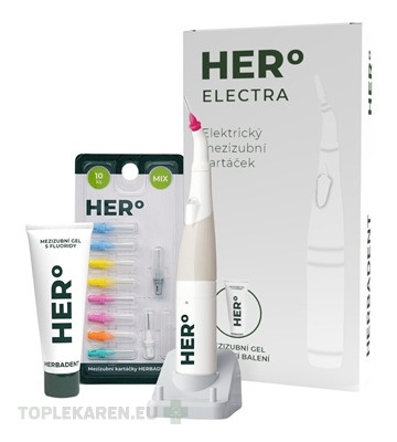 Medzizubná elektrická kefka HER° ELECTRA vám pomôže so zavedením kefky do medzizubných priestorov, kde šetrne ale dôkladne vyčistí usadené nečistoty. Odporúčame používať v kombinácii s HERBADENT HER ° Medzizubným gélom, ktorý navyše upokojí podráždené ďasná a prispeje k ich regenerácii.