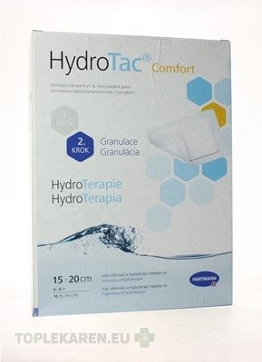 Vlastnosti a spôsob účinku: HydroTac Comfort dokáže rovnako absorbovať ranový sekrét ako aj aktívne hydratovať ranu v prípade nedostatočne vlhkého prostredia, ktoré je potrebné pre proces hojenia. Gél na strane určenej na kontakt s ranou zabraňuje prilepeniu na plochu defektu. Krytie HydroTac comfort možno odstrániť z rany bez traumatizácie (bez poškodenia a takmer bezbolestne).