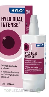 Interakcia hyaluronátu sodného a ectoinu poskytuje intenzívne dlhodobé zvlhčenie povrchu oka a chráni pred odparovaním sĺz. Typické príznaky svrbenie a pálenie, ktoré sa vyskytujú ako zápalové reakcie na podráždenie vyvolané prostredím zmierňuje HYLO DUAL INTENSE®