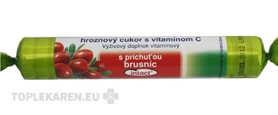 Výživový doplnok, cukríky (pastilky) s hroznovým cukrom a vitamínom C s príchuťou brusníc zabalené v rolke.
