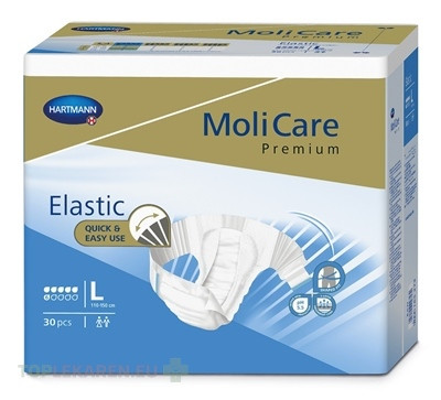 Zalepovacie plienkové nohavičky s elastickými bočnými pásmi v modrom balení, obvod bokov 110-150 cm, savosť 6 kvapiek, 2349 ml.  Viac na adc.sk