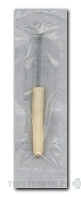 Pomôcka k cielenej aplikácii tekutej látky (kvapiek) do očí. Sklenená trubička s gumeným vačkom. Viac na adc.sk