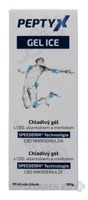 PEPTYX GEL ICE je chladivý emulzný gél obohatený aktívnym kanabinoidom s obsahom allantoinu aktívnej látky nachádzajúcej sa v rastline Kostihoj, CBD – kanabidiol a mentolom v mikroemulzii.