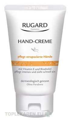 Rugard Vitamínový krém na ruky intenzívne chráni podráždenú a suchú pokožku namáhaných rúk. Obsahuje vitamíny E, A, mandľový olej, bambucké maslo a bisabol. Vitamín E chráni pokožku rúk pred škodlivými vplyvmi vonkajšieho prostredia. V optimálnom množstve podporuje elasticitu bunkových tkanív, pokožka sa stáva hebkou a hladkou. Rýchlo sa vstrebáva a nemastí. Bez parabénov.