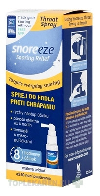 Iba 3 vstreky Snoreeze spreja do hrdla so sviežou mätovou príchuťou pred spaním prinášajú dlhotrvajúcu úľavu od chrápania každú noc.