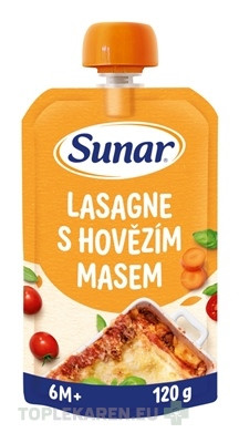 Sunar príkrm lasagne s hovädzím mäsom je hotové jedlo v praktickom obale, ktoré môžete mať kedykoľvek so sebou. Príkrm je vhodný od ukončeného 6. mesiaca. Jemná konzistencia bez kúskov zaistí ľahké vytlačenie obsahu z vrecka. Počas chvíľky môžete servírovať chutné jedlo na obed či večeru. Bez pridanej soli*, zo 100% poctivých surovín v tej najvyššej baby kvalite. Navarené hravo a s chuťou.