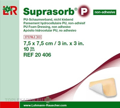 Obväz sa pri vstrebávaní exsudátu ľahko roztiahne a môže tak prikryť povrch rany. Zlepeniu s ranou sa vo veľkom rozsahu zabrái vytvorením vlhkého hojivého prostredia rany. Pri výmene obväzu sa tkanivo nepoškodzuje. Polyuretánový penový obväz Suprasorb® P, nelepiaci, je veľmi pružný, a preto je vhodný aj na miesta, ktoré sa iba ťažko ošetrujú.